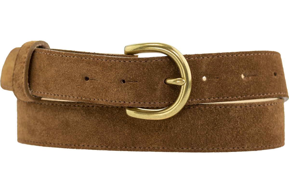 Tan ostrich has been consistently our best-selling colour, as it works with almost everything, it is remiss that we have not had the chestnut suede in the range for a number of years and seeing this lovely full grain chestnut suede from our great suede manufacturer reminded us of this. All of the suedes we use are superior in quality to 95% of suedes you will see on the high street as they are called ‘full-grain’ which means that they have all of the durability and structure of normal leathers. Cheaper high street suedes are cut in two, to produce twice the amount of suede, but with half the strength and pleasing suede features. You are really getting your money’s worth with this belt, and it will work with silver and gold buckles.